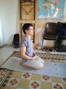 - realizzare una posizione di raccoglimento (con le gambe incrociate o in ginocchio seduti sui talloni), stabile e rilassata, con la schiena bene eretta;